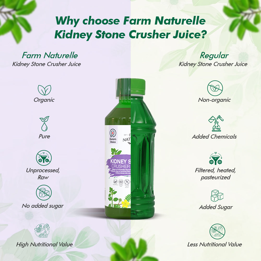 Say goodbye to kidney stone discomfort with Farm Naturelle’s powerful herbal juice Crafted with potent herbs like Gorjubeej, Punarnavabark, Ajwain, and Pattharchatta, this natural blend helps break down kidney stones and supports overall kidney health. Safe, effective, and chemical-free, experience the power of nature in every sip.